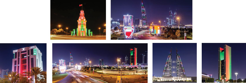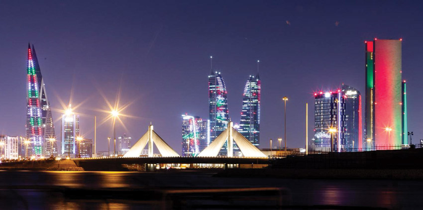 مباني البحرين تتزين بألوان العلم العماني احتفالا باليوم الوطني