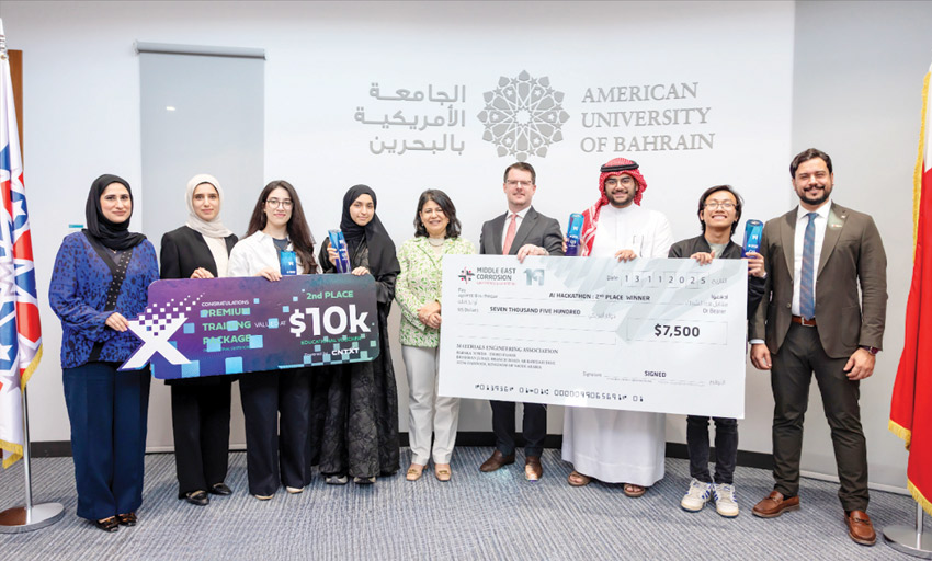 حصل فريق طلبة الجامعة الأمريكية بالبحرين على المركز الثاني في الدورة الأولى من هاكاثون الذكاء الاصطناعي الذي أُقيم ضمن فعاليات مؤتمر ومعرض الشرق الأوسط للتآكل وسلامة الأصول في نسخته التاسعة عشرة، والذي استضافته مدينة الظهران بالمملكة العربية السعودية خلال الفترة من 11 إلى 13 نوفمبر الجاري، حيث جمع هذا الحدث أكثر من 1500 طالب وطالبة من جميع أنحاء المنطقة، ما شكّل منصة تنافسية مرموقة للابتكار في مجال التآكل والمواد.