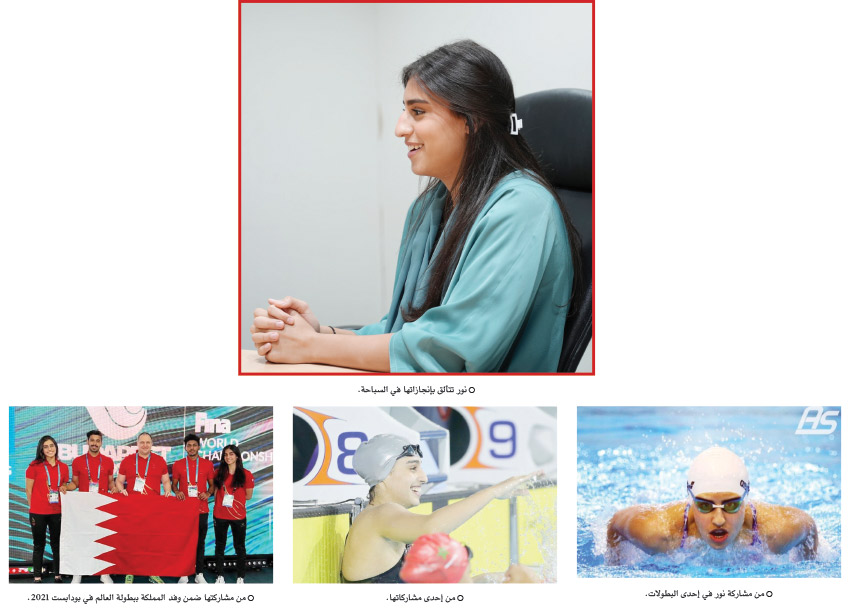 برصيد حافل من الإنجازات الخليجية والعربية، تواصل سباحتنا البحرينية نور طه (19 عامًا) تألقها في مختلف المحافل، بعد أن حققت أربع ميداليات ذهبية في البطولة الخليجية التاسعة والعشرين التي استضافتها البحرين في يوليو الماضي، وأربع ميداليات ملونة في البطولة العربية الرابعة للألعاب المائية التي أقيمت مؤخرًا في المغرب.