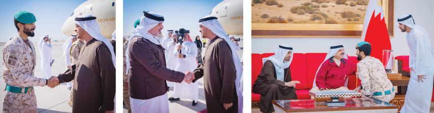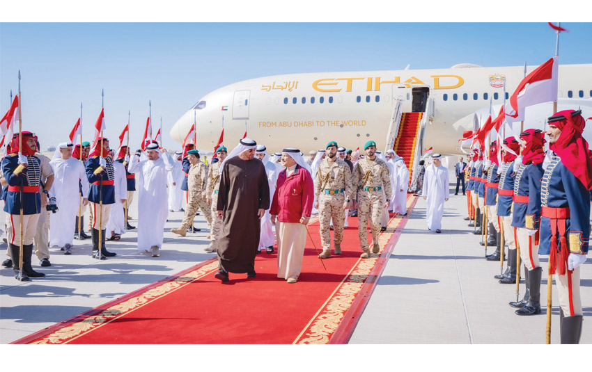 كان حضرة صاحب الجلالة الملك حمد بن عيسى آل خليفة ملك البلاد المعظم في مقدمة مستقبلي أخيه صاحب السمو الشيخ محمد بن زايد آل نهيان رئيس دولة الإمارات العربية المتحدة الشقيقة، لدى وصوله إلى البلاد أمس في زيارة لمملكة البحرين.