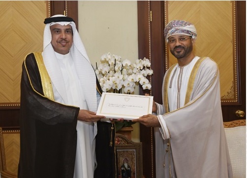 وتسلّم الرسالة معالي السيد بدر بن حمد بن حمود البوسعيدي، وزير خارجية سلطنة عُمان، لدى استقباله في مقر وزارة الخارجية سعادة الدكتور جمعة بن أحمد الكعبي، سفير مملكة البحرين لدى سلطنة عُمان.