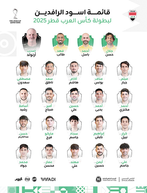واستدعى أرنولد 5 لاعبين جدد إلى قائمة «أسود الرافدين»، هم ميثم جبار وأحمد حسن مكنزي وأمير صباح وكرار نبيل وسجاد جاسم، فيما أعاد بايش الذي تعرض لاصابة سابقة في الدور الرابع من تصفيات مونديال 2026 للتشكيلة التي شهدت الاستقرار على 17 لاعبا، من أصل 23، من الذين اسهموا ببلوغ العراق المحلق العالمي.