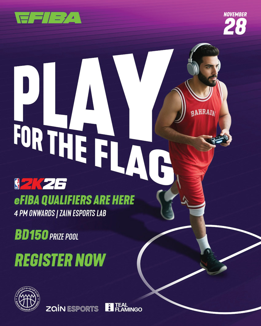 يستعد مختبر «زين» للرياضات الإلكترونية بالتعاون مع «تيل فلامينغو ستوديوز» لاستضافة التصفيات الرسمية لمسابقة كرة السلة الإلكترونية (eFIBA NBA 2K26) وذلك يوم 28 نوفمبر الجاري بإشراف من الاتحاد البحريني لكرة السلة.