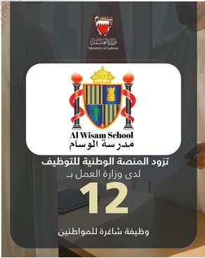 في إطار تنفيذ توجيهات صاحب السمو الملكي الأمير سلمان بن حمد آل خليفة ولي العهد رئيس مجلس الوزراء، بعرض 3 فرص وظيفية لكل باحث عن عمل مسجل لدى وزارة العمل، مدرسة الوسام تزود المنصة الوطنية للتوظيف بـ 12 وظيفة شاغرة للمواطنين.