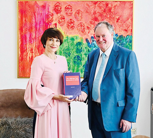 وخلال اللقاء، رحبت البروفيسور ماريكا باتراني بولسون الأمين العام لمجلس البحرين لتسوية المنازعات الدولية بالوفد الزائر، واستعرضت معهم أفضل الممارسات في مجال تسوية المنازعات وبناء القدرات، مسلطةً الضوء على الإطلاق الناجح والمثمر لمحكمة البحرين التجاريّة الدوليّة وخليج العدالة العالمي (Global Justice Bay) الذي يعكس المساعي الرامية لبناء منظومة مرتكزة على الحياد والتميز القضائي والتعاون الدولي بمملكة البحرين.