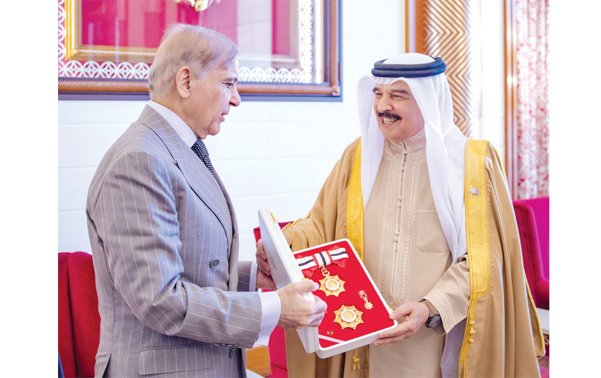 وتقديرًا من حضرة صاحب الجلالة لجهود دولة رئيس الوزراء الباكستاني في تنمية علاقات البلدين الشقيقين فقد تفضل جلالته بمنحه وسام البحرين من الدرجة الأولى.