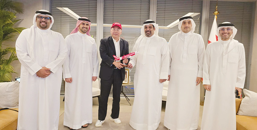 استقبل الشيخ سلمان بن خليفة آل خليفة وزير المالية والاقتصاد الوطني رئيس مجلس إدارة شركة ممتلكات البحرين القابضة (ممتلكات) قمر الدين ميرانون الرئيس التنفيذي لشركة طيران آسيا، بحضور الشيخ عبدالله بن خليفة آل خليفة الرئيس التنفيذي لشركة ممتلكات البحرين القابضة (ممتلكات)، وعدد من المسؤولين.