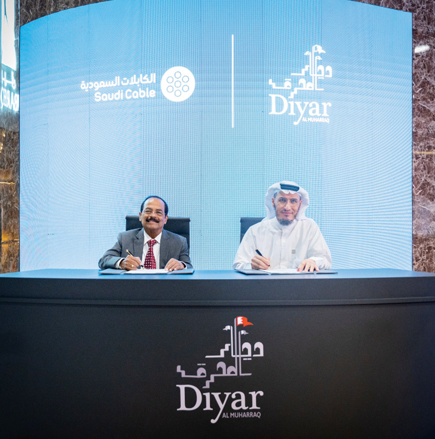 أعلنت شركة ديار المحرق، الشركة الرائدة في قطاع التطوير العقاري في مملكة البحرين، توقيع اتفاقية مع شركة الكابلات السعودية، لتصنيع وتمديد الكابلات لمحطتيّ نقل الكهرباء بجهد 66 كيلو فولت المُقرر تدشينهما لدعم مشروع الوَسِم والمنطقة التجارية ومشاريع الجزيرة الشمالية.