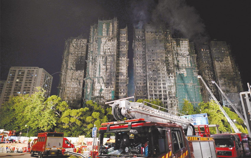 بعد أن كافحت النيران طوال الليل، واصلت فرق الإطفاء الخميس جهودها لإخماد الحريق في المباني التي لا يزال يتصاعد منها الدخان. واندلع الحريق يوم الأربعاء قبيل الساعة 15:00 (7:00 بتوقيت جرينتش) في منطقة تاي بو في شمال المدينة. واجتاحت النيران التي يُحتمل أن تكون غذّتها سقالات من الخيزران ومواد صناعية مُستخدمة في أعمال التجديد، سبعة من الأبراج السكنية الثمانية في المجمع الذي افتُتح عام 1983 ويضم 1984 شقة. وبحسب السلطات، شارك أكثر من 1200 شخص في عمليات الإنقاذ. وكان عنصر إطفاء من ضحايا الحريق. كذلك، أفادت القنصلية الإندونيسية بمقتل مواطنين إندونيسيين، هما عاملان منزليان.
