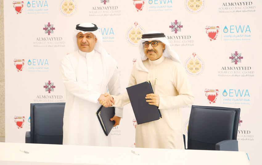 وقعت هيئة الكهرباء والماء وجامعة البحرين مساء أمس اتفاقية لأكبر مشروع طاقة شمسية في مؤسسة تعليمية، جاء ذلك بحضور المهندس كمال أحمد رئيس الهيئة والدكتور محمد بن مبارك وزير التربية والتعليم، رئيس مجلس أمناء جامعة البحرين والدكتور فؤاد الأنصاري رئيس الجامعة.