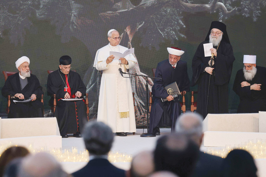 بيروت - (أ ف ب): في اليوم الثاني من زيارته التاريخية للبنان، دعا البابا لاوون الرابع عشر قادة الطوائف إلى رفض العنف والاقصاء، مجددا إيمانه بقدرة اللبنانيين على العيش معا، في البلد القائم على توازنات سياسية وطائفية هشة.