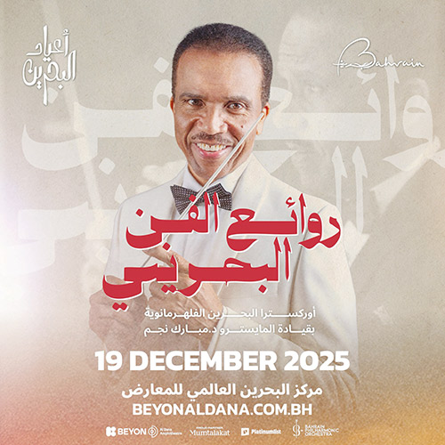 تعلن هيئة البحرين للسياحة والمعارض، بالشراكة مع مسرح بيون الدانة، استضافة أمسية موسيقية بعنوان «روائع الفن البحريني» تقدّمها أوركسترا البحرين الفيلهارمونية بقيادة المايسترو الدكتور مبارك نجم، وذلك يوم الجمعة 19 ديسمبر 2025 على خشبة مسرح بيون الدانة، ضمن احتفالات أسبوع العيد الوطني وموسم أعياد البحرين.