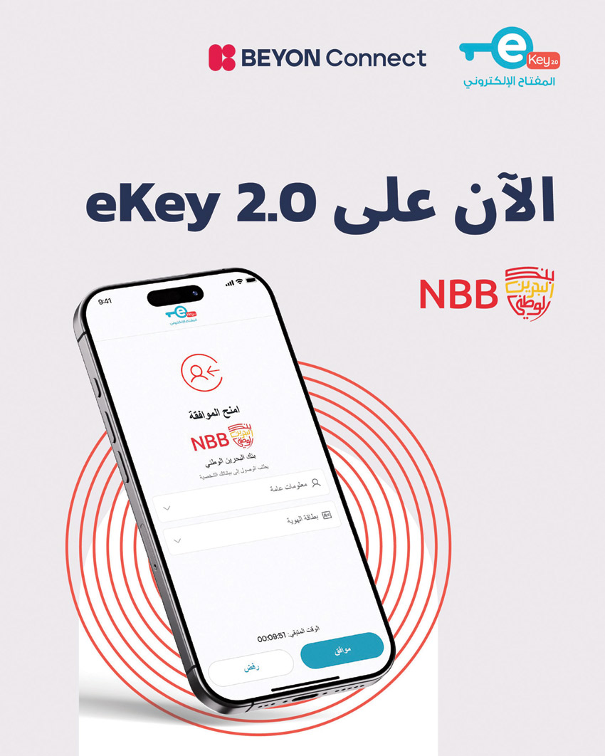 أبرم بنك البحرين الوطني (NBB) اتفاقية شراكة مع شركة Beyon connect إحدى شركاتBeyon لتبني المفتاح الإلكتروني المطور للأعمال (EKEY-B) كآلية جديدة ومبتكرة للتحقق الرقمي من هوية العميل «اعرف عميلك الرقمية KYC - »، بما يُبسط عملية وصول الأفراد إلى الخدمات المصرفية ويساعد على تحسين تجربتهم كمستخدمين.