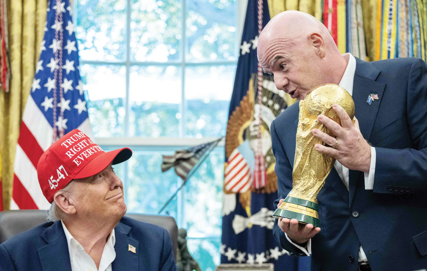 لوس أنجلوس – (أ ف ب): عندما زار رئيس الاتحاد الدولي لكرة القدم (فيفا) جاني إنفانتينو الرئيس الأمريكي دونالد ترامب في البيت الأبيض عام 2018، كسب ودّ الأخير بهدية: بطاقة حمراء ضخمة، واقترح مازحا أن يستخدمها ترامب «كلما أراد طرد أحدهم».