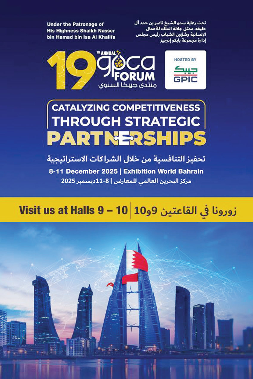 تحت رعاية سمو الشيخ ناصر بن حمد آل خليفة ممثل جلالة الملك للأعمال الإنسانية وشؤون الشباب رئيس مجلس إدارة مجموعة بابكو إنرجيز، تنطلق للمرة الأولى فعاليات المنتدى السنوي التاسع عشر للاتحاد الخليجي للبتروكيماويات والكيماويات (GPCA) وسيقام خلال الفترة من 8 إلى 11 ديسمبر 2025 في مركز البحرين الدولي للمعارض تحت شعار «تحفيز التنافسية من خلال الشراكات الاستراتيجية».