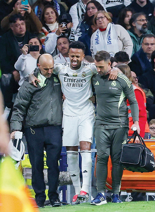 وأعلن‭ ‬ريال‭ ‬في‭ ‬بيان‭ ‬أن‭ ‬قلب‭ ‬الدفاع‭ ‬البالغ‭ ‬27‭ ‬عاما‭ ‬الذي‭ ‬استُبدل‭ ‬في‭ ‬الدقيقة‭ ‬21‭ ‬بالألماني‭ ‬أنتونيو‭ ‬روديغر‭ ‬وهو‭ ‬يمسك‭ ‬بفخذه‭ ‬الأيسر،‭ ‬يعاني‭ ‬من‭ ‬‮«‬تمزق‭ ‬في‭ ‬وتر‭ ‬العضلة‭ ‬ذات‭ ‬الرأسين‭ ‬الفخذية‭ ‬في‭ ‬الساق‭ ‬اليسرى‭...‬‮»‬‭.‬