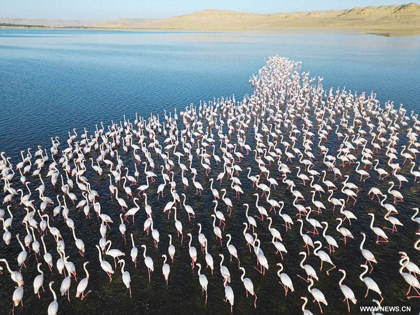 مع اقتراب الشتاء عادت أسراب طيور الفلامنجو لتحلق فوق سماء ومياه بحيرة قارون بمحافظة الفيوم (80 كيلومترا جنوب القاهرة).