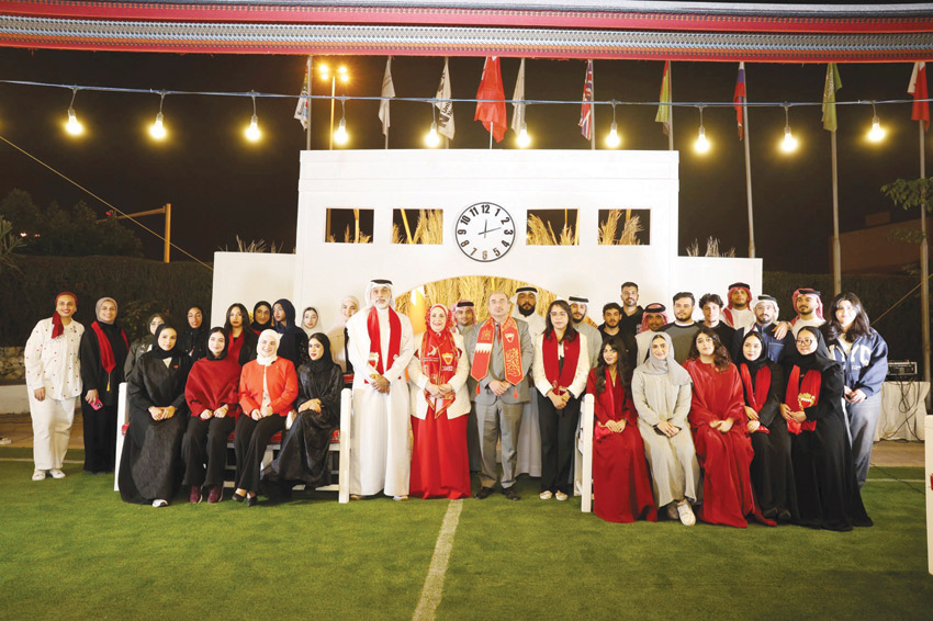 احتفلت الجامعة الخليجية مساء يوم الاربعاء 10 ديسمبر بالعيد الوطني المجيد داخل الحرم الجامعي، في فعالية مميزة تولّى تنظيمها طلبة الجامعة من مختلف الكليات، حيث جمع الحفل بين الإبداع الشبابي والروح الوطنية، في إطار يعكس قدرة الطلبة على قيادة وتنظيم الفعاليات الكبرى بروح المسؤولية والانتماء. وتميّزت احتفالية هذا العام بالاعتماد على مواد مُعاد تدويرها في معظم الديكورات والأركان انسجامًا مع أهداف الاستدامة التي تتبناها الجامعة، ما أضفى على الفعالية لمسة ابتكارية تعكس وعي الطلبة البيئي وحرصهم على تطبيق ممارسات مستدامة في مختلف الأنشطة الجامعية. وتزيّن الحرم الجامعي بديكورات مستوحاة من التراث البحريني الأصيل، مصحوبة ببرنامج متنوع من الأنشطة الطلابية، من بينها مسابقة أفضل لبس تقليدي، وركن الحنّاء، ومجموعة من الألعاب الترفيهية للعائلات والأطفال، إضافة إلى العروض التراثية المميزة التي قدمتها فرقة الهبّان للفنون الشعبية وسط أجواء مفعمة بالفخر والانتماء للوطن.