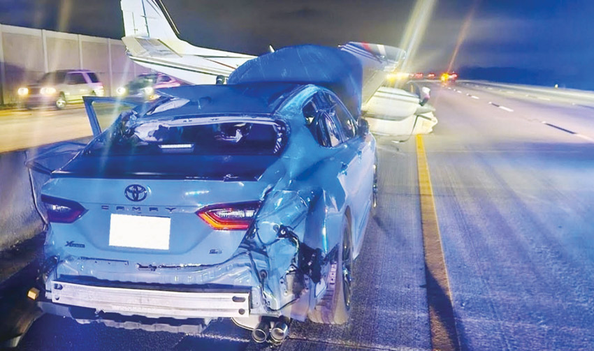 لحظات مرعبة.. هبوط طائرة فوق سيارة على الطريق السريع