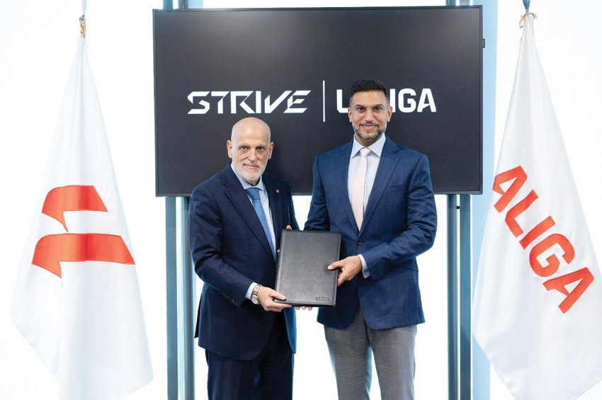 أعلن الدوري الإسباني «لاليغا» و«سترايف» وهي شركة استثمارية خاصة متخصصة في مجالات الرياضة والترفيه تتخذ من مملكة البحرين مقراً لها توقيع مشروع مشترك يهدف إلى تسريع نمو لاليغا وتعزيز حضورها على المدى الطويل في أسواق منطقة الشرق الأوسط وشمال إفريقيا وجنوب آسيا.