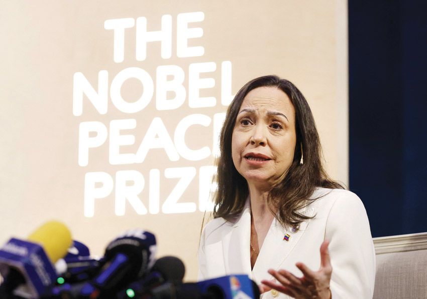 وكانت ماتشادو (58 عاما) التي مُنحت جائزة نوبل في أكتوبر لجهودها في تعزيز الانتقال الديموقراطي في فنزويلا، تعيش متوارية في بلدها حتى اليوم، وقد وعدت بأنها «ستبذل كل ما في وسعها» للعودة رغم خطر اعتقالها. وقالت للصحافيين خلال زيارة إلى البرلمان النرويجي الخميس «أتيتُ لاستلام الجائزة باسم الشعب الفنزويلي، وسأعيدها إلى فنزويلا في الوقت المناسب». وأضافت «لن أذكر متى وكيف سأعود، لكنني سأبذل قصارى جهدي للعودة وإنهاء الاستبداد في أقرب وقت ممكن»، مؤكدة ضرورة «إتمام المهمة» لإرساء الديموقراطية في فنزويلا.