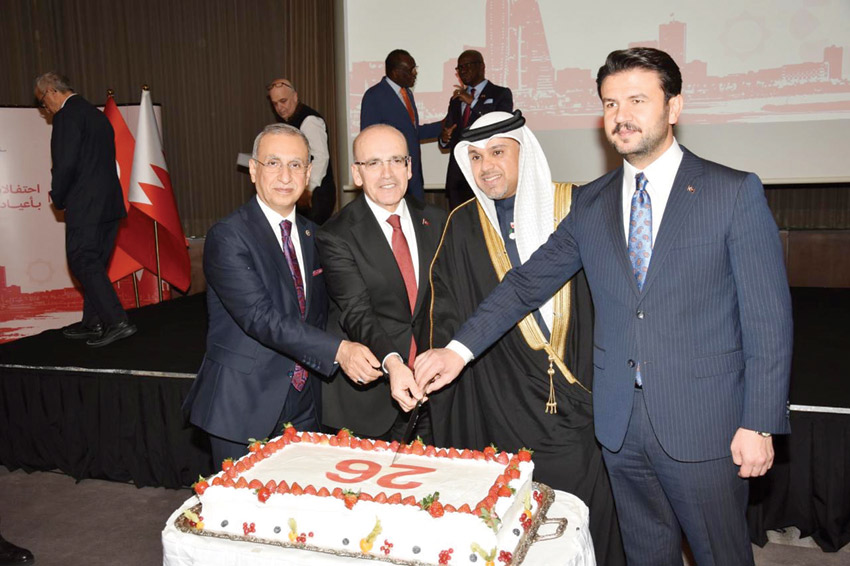 أقامت سفارة مملكة البحرين لدى الجمهورية التركية حفل استقبال بمناسبة احتفال مملكة البحرين بأعيادها الوطنية، وعيد الجلوس السادس والعشرين لحضرة صاحب الجلالة الملك حمد بن عيسى آل خليفة ملك البلاد المُعظم، وما يصاحبها من مناسبات وطنية، بحضور محمد شيمشك وزير الخزانة والمالية التركي، ورؤساء البعثات الدبلوماسية للدول الشقيقة والصديقة المعتمدة في أنقرة، إلى جانب كبار المسؤولين في الحكومة التركية ونواب مجلس الأمة التركي الكبير ومجموعة من كبار رجال الأعمال.