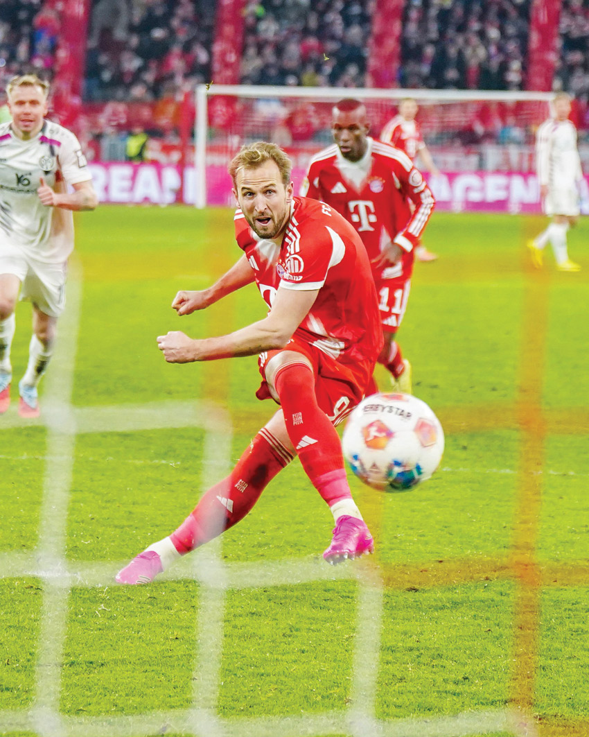 وكان كاين هو هداف الدوري الألماني في أول موسمين له مع بايرن حيث سجل 36 و26 هدفا على التوالي.