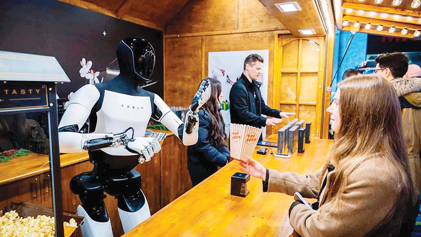 كشفت شركة «تسلا»، يوم السبت، عن روبوتها الشبيه بالبشر المسمى «أوبتيموس» أمام الجمهور في العاصمة الألمانية برلين. وقام الروبوت بتوزيع الفشار في سوق لعيد الميلاد بمركز التسوق «إل بي 12»، المعروف أيضا باسم «مول برلين»، حيث كان يلتقط علب الفشار الصغيرة، ويملؤها، ثم يقدمها للزوار. وتشكّل طابور طويل أمام المنصة، وكما هو الحال في عروض مماثلة أخرى قدمتها تسلا، ظل من غير الواضح إلى أي مدى كان «أوبتيموس» يعمل بشكل ذاتي، أو ما إذا كان خاضعا للتحكم عن بعد جزئيا على الأقل. وفي الوقت الذي يتوقع فيه أن تتراجع مبيعات سيارات تسلا الكهربائية مرة أخرى هذا العام أعلن الرئيس التنفيذي للشركة إيلون ماسك أن مستقبل تسلا يكمن في سيارات الأجرة ذاتية القيادة «الروبوتاكسي»، والروبوتات الشبيهة بالبشر. كما توقع ماسك أن يفوق عدد الروبوتات عدد البشر في العالم مستقبلا، مشيرا إلى أن السيارات ذاتية القيادة والروبوتات ستُفضي إلى «عالم بلا فقر»، يتمتع فيه الجميع بإمكانية الوصول إلى أفضل رعاية طبية، وأضاف قائلا: «سيكون أوبتيموس جراحا مذهلا».