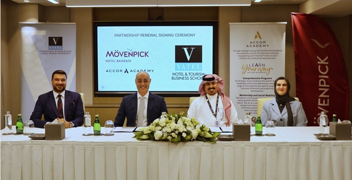 وقّعت كلية فاتيل البحرين للضيافة مذكرة تفاهم مع فندق موفنبيك البحرين، وذلك في إطار حرصها على ترسيخ شراكاتها مع مختلف مؤسسات قطاع الضيافة ومواصلة تعزيز العلاقات الوطيدة التي تجمعها بها، حيث تهدف إلى إتاحة فرص تدريب عملية متميزة لطلبة الكلية ضمن بيئة فندقية تتمتع بأعلى معايير الخدمة والجودة في قطاع الضيافة، وتعزيز التعاون في مختلف المجالات ذات الاهتمام المشترك.