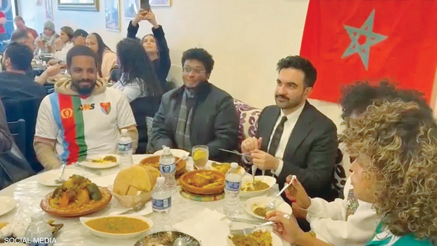 شاهد عمدة مدينة نيويورك المنتخب حديثا الديمقراطي زهران ممداني مباراة افتتاح كأس الأمم الإفريقية 2025 بين المغرب وجزر القمر يوم الأحد، في أحد المطاعم المغربية بالمدينة. وأظهرت مقاطع فيديو انتشرت على مواقع التواصل الاجتماعي ممداني وهو يستمتع بالعديد من الأطباق المغربية في أحد المطاعم في نيويورك، رفقة الجماهير المغربية الحاضرة لمشاهدة مباراة «أسود الأطلس» وجزر القمر. وذكر حساب المطعم الذي نشر الفيديو: «تشرفنا باستقبال زهران ممداني خلال مباراة المغرب. شخص رائع من أكثر الأشخاص تواضعا، شاهد المباراة مع الجميع، يبتسم، يضحك، يشارك فرحة صديقه، كأننا عائلة واحدة، لا كبرياء، فقط طاقة إيجابية واحترام للثقافة والناس». وأظهر مقطع الفيديو ممداني وهو يلتقط صورا مع رواد المطعم ويبتسم ويضحك معهم، ويتشارك معهم أكل الطاجين المغربي وبعض الأكلات المغربية الأخرى ذائعة الصيت عالميا. وتداول رواد مواقع التواصل الاجتماعي المقطع، وحظي بمئات آلاف المشاهدات والإعجابات والتعليقات. ويوم الأحد فاز «أسود الأطلس» على جزر القمر بهدفين من دون مقابل في افتتاح منافسات كأس الأمم الإفريقية لكرة القدم في نسختها الـ35. وافتتحت المنافسة على ملعب مولاي عبدالله بالرباط بحضور ولي عهد المغرب الأمير مولاي الحسن