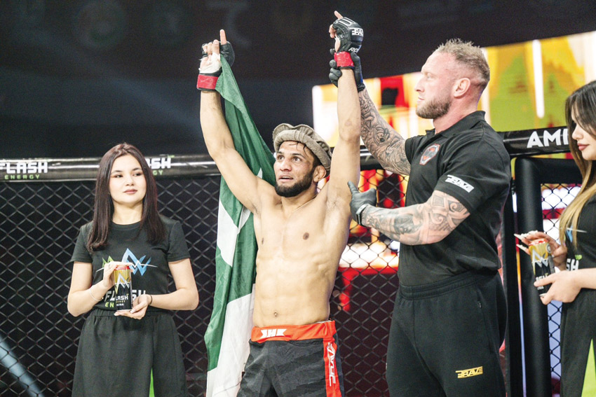 كما واصل الباكستاني إسماعيل خان الملقب بـ«البركان» سلسلة انتصاراته داخل قفص BRAVE CF، بعدما حقق فوزًا جديدًا بالإخضاع الفني على القرغيزي رايمبيك تازجيباييف، من خلال خنق الذراع والمثلث (Arm-Triangle Choke) في الجولة الثانية من نزال جرى عند وزن 60.5 كغ.