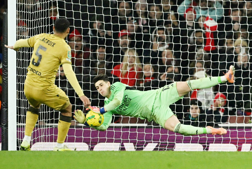 وتأهل «المدفعجية» إلى نصف النهائي، بعدما تصدى كيبا لركلة الفرنسي ماكسانس لاكروا في انتصار مثير 8-7 بركلات الترجيح، عقب التعادل 1-1 في الوقت الأصلي على ملعب الإمارات.