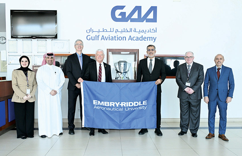 استقبلت أكاديمية الخليج للطيران، الذراع التدريبية لمجموعة طيران الخليج، وفدًا من جامعة إمبري ريدل للطيران، برئاسة الدكتور بي. باري باتلر رئيس الجامعة، والدكتور جون آر. واتريت، رئيس الحرم الجامعي الدولي لتفقّد مرافق الأكاديمية والاطلاع على التقدّم المتحقّق في عدد من المبادرات المشتركة بين الطرفين، بما فيها برنامج اللغة الإنجليزية لقطاع الطيران المخصص للطيارين التجاريين، والذي يهدف إلى دمج مهارات اللغة الإنجليزية المتعلقة بالطيران ضمن الإطار الموحّد لمعايير تأهيل الطيارين بالأكاديمية.