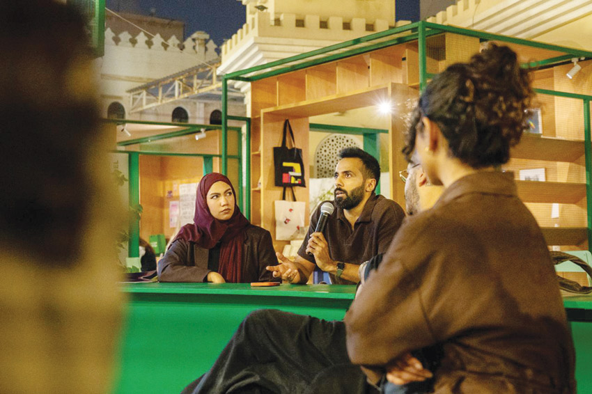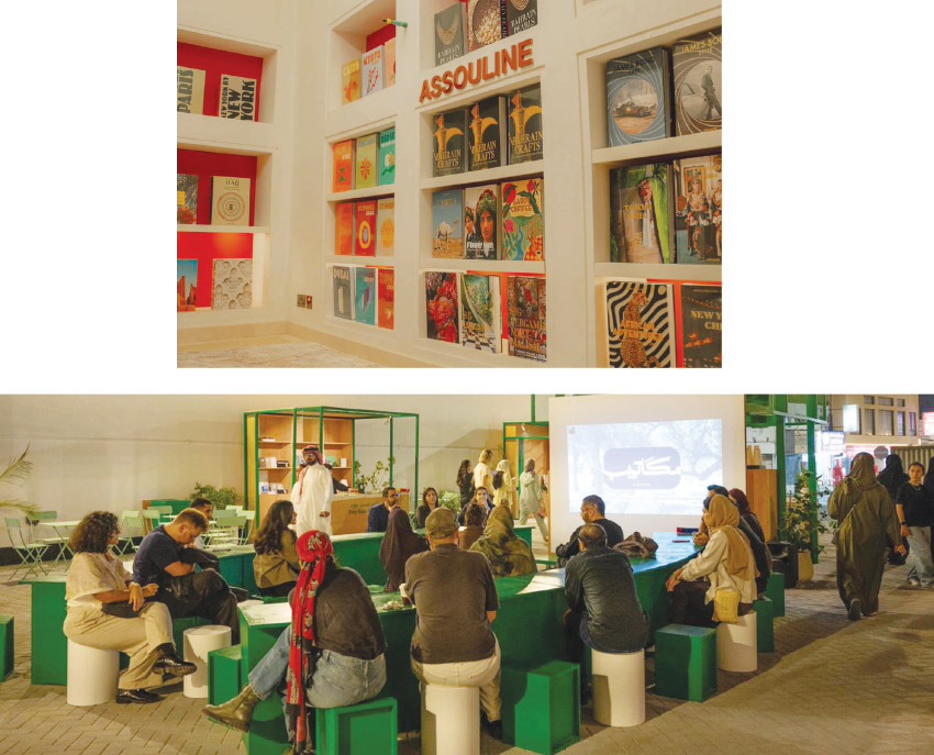 وتتضمّن المساحة مجموعة من الجلسات الحوارية والبرامج التفاعلية، التي تُعنى بتبادل الخبرات في مجال التصميم، من بينها «مجلس التصميم: كيف تحكي الممارسات الإبداعية قصصنا»، الذي يستلهم فكرة المجلس بوصفه منصة للحوار وتبادل الخبرات. ويقدّم ناسو آرت جورنال برنامجًا يناقش استدامة المنظومات الفنية في المنطقة، إلى جانب جلسة حوارية بمشاركة الشيخة نيلة بنت أحمد آل خليفة وثريا دوران، تتناول نماذج الفن المستدام في مملكة البحرين والشرق الأوسط، بمشاركة عدد من المختصين والمبدعين في مجال الفنون البصرية.