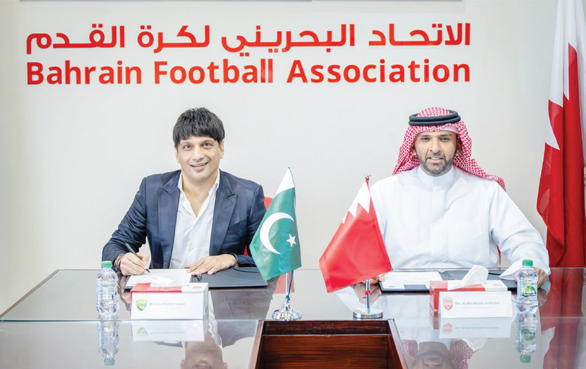 في خطوة استراتيجية تهدف إلى تعزيز الروابط الرياضية وتطوير منظومة كرة القدم، وقع رئيس مجلس إدارة الاتحاد البحريني لكرة القدم الشيخ علي بن خليفة بن أحمد آل خليفة، اتفاقية تعاون رسمية مع نظيره رئيس الاتحاد الباكستاني لكرة القدم سيد محسن جيلاني، وذلك في مقر الاتحاد بالرفاع، بحضور الأمين العام للاتحاد البحريني لكرة القدم راشد الزعبي.