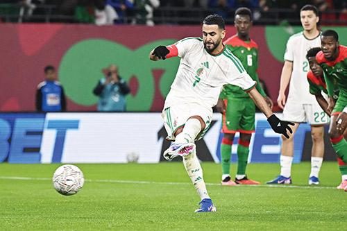 الرباط - (أ ف ب): قاد مهاجم الأهلي السعودي رياض محرز منتخب بلاده الجزائر الى اللحاق بمصر ونيجيريا إلى ثمن النهائي بتسجيله هدف الفوز في مرمى بوركينا فاسو 1-0، على ملعب ولي العهد الأمير مولاي الحسن في الرباط وأمام 18522 متفرجا في ختام الجولة الثانية من منافسات المجموعة الخامسة في كأس الأمم الإفريقية لكرة القدم في المغرب.