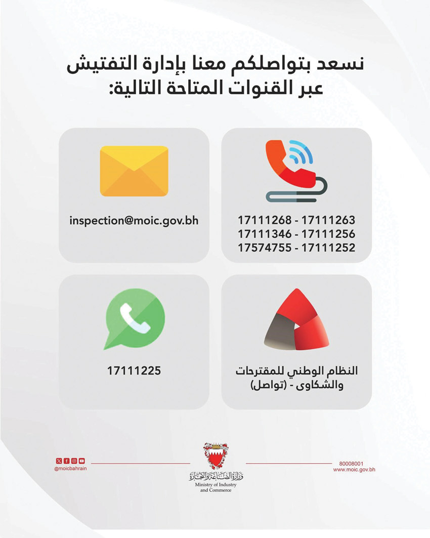 وفي هذا السياق، أشارت الوزارة إلى أن إدارة التفتيش ستكثف جهودها الرقابية عبر وضع خطط عمل متكاملة وتنفيذ حملات وزيارات تفتيشية موسّعة في مختلف أسواق ومناطق مملكة البحرين، مع التركيز على القطاعات المرتبطة بالاحتياجات الأساسية للمواطنين والمقيمين، لضمان عدم وقوع أي ممارسات مخالفة كالتلاعب أو الرفع غير المبرر للأسعار.