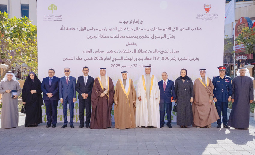 في إطار توجيهات صاحب السمو الملكي الأمير سلمان بن حمد آل خليفة ولي العهد رئيس مجلس الوزراء، بشأن التوسع في التشجير بمختلف محافظات مملكة البحرين، قام الشيخ خالد بن عبدالله آل خليفة نائب رئيس مجلس الوزراء، يشاركه عدد من الوزراء وكبار المسؤولين، بغرس وري الشجرة رقم (191) ألفاً، وذلك في مقر بلدية المنامة، احتفاءً بانتهاء أعمال التشجير وتجاوز الهدف السنوي ضمن خطة التشجير لعام 2025.