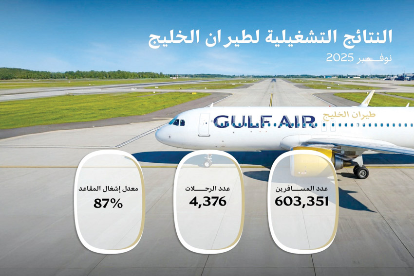 سجّلت شركة طيران الخليج، الناقلة الوطنية لمملكة البحرين، أداءً تشغيليا قويا خلال شهر نوفمبر 2025، مدعومًا بالإقبال الكبير على السفر عبر شبكة وجهاتها المتنامية.