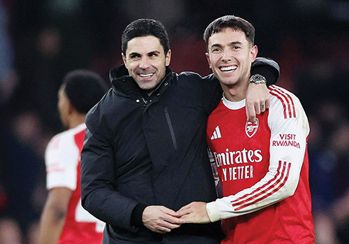 لندن - (أ ف ب): يعتقد الإسباني ميكل أرتيتا، مدرب أرسنال، أن فريقه بدأ يجني ثمار العمل الشاق، مع دخول «المدفعجية» عام 2026 وهم في صدارة الدوري الإنكليزي لكرة القدم.