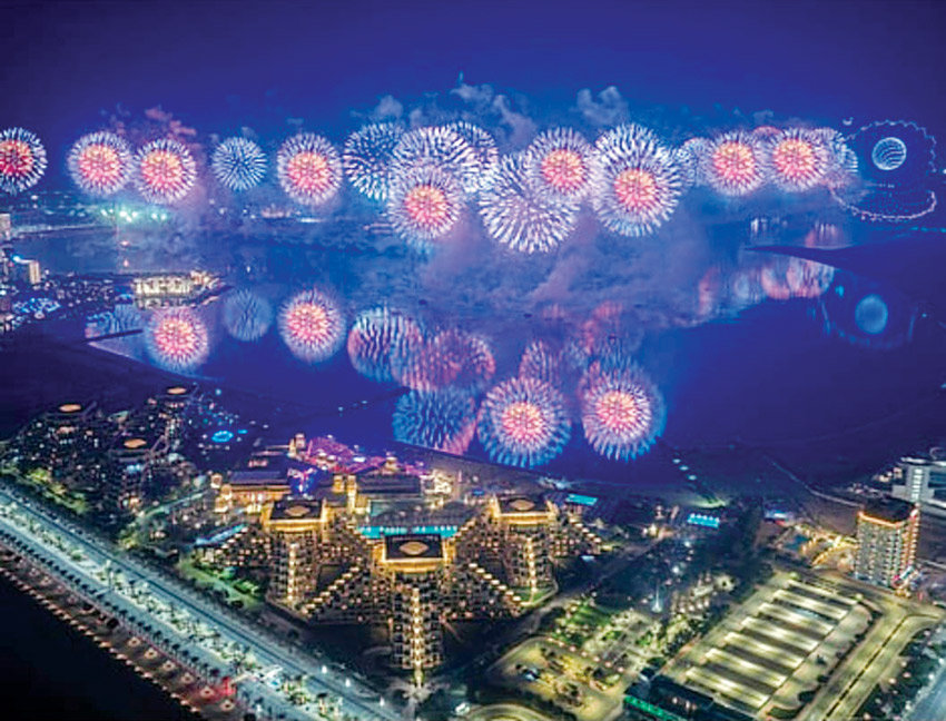 وفي الإمارات العربية المتحدة تصدّرت الاحتفالات المشهد الخليجي، حيث سجّلت رأس الخيمة رقماً قياسياً عالمياً جديداً بتنفيذ أكبر عرض ألعاب نارية احتفالاً برأس السنة الميلادية 2026. واستُوحي العرض من رمز طائر العنقاء، تعبيراً عن التجدد والتفاؤل، بمشاركة نحو 2300 طائرة مسيّرة، بينها ألف طائرة مزوّدة بتقنيات الألعاب النارية والليزر، رسمت لوحات بصرية مبهرة فوق الواجهة البحرية للإمارة.