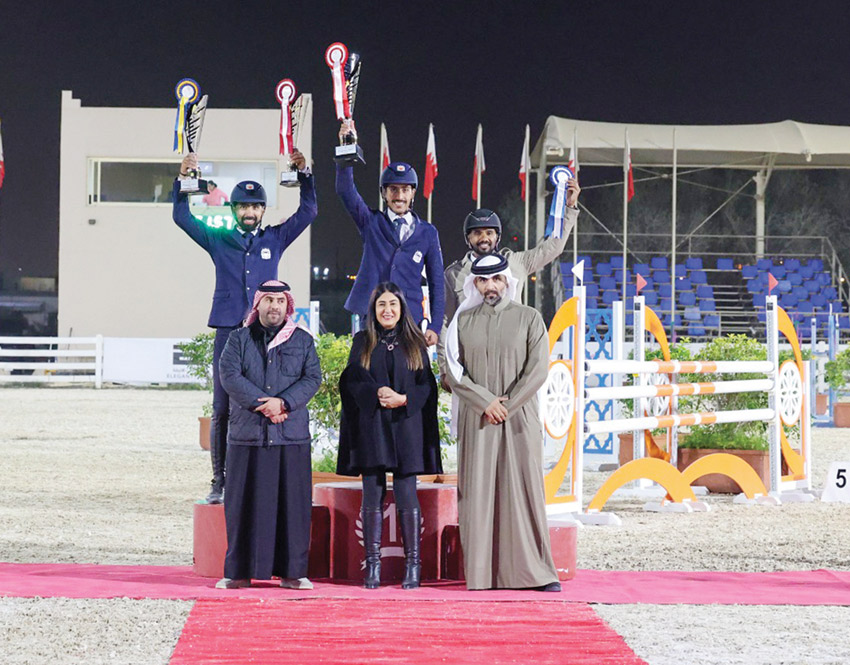 توّج الشيخ عبدالله بن محمد آل خليفة رئيس لجنة قفز الحواجز بالاتحاد الملكي البحريني للفروسية وسباقات القدرة، فارس فريق وزارة الداخلية معيوف الرميحي مع جواده غياث بلقب بطولة الاتحاد الملكي البحريني للفروسية وسباقات القدرة لقفز الحواجز، والتي أقيمت منافساتها «الجمعة»، بميدان الرفة بالاتحاد الرياضي العسكري وسط منافسات قوية ومشاركة واسعة من الفرسان والاسطبلات المحلية.