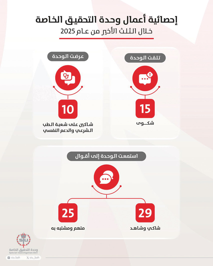 وبشأن إحصاءات أعمال الوحدة خلال الفترة المذكورة فقد استمعت الوحدة إلى أقوال 29 من الشاكين والشهود، فيما استجوبت 25 متهمًا ومشتبهًا فيه من منتسبي الشرطة، وأحالت 10 من الشاكين إلى شعبة الطب الشرعي والدعم النفسي.