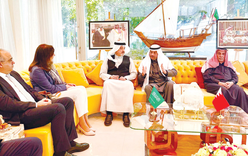 في إطار تعزيز العمل الدبلوماسي وتوطيد قنوات التواصل مع رؤساء البعثات الدبلوماسية المعتمدة لدى مملكة البحرين الشقيقة، أقام سفير خادم الحرمين الشريفين لدى المملكة نايف بن بندر السديري مأدبة غداء رسمية في دار السكن، وذلك على شرف السفراء المعيّنين حديثاً، وهم: عارف يوسف صالح سفير دولة فلسطين، وهادي هاشم سفير الجمهورية اللبنانية، وناصر عبدالله حسن النصر سفير دولة قطر.