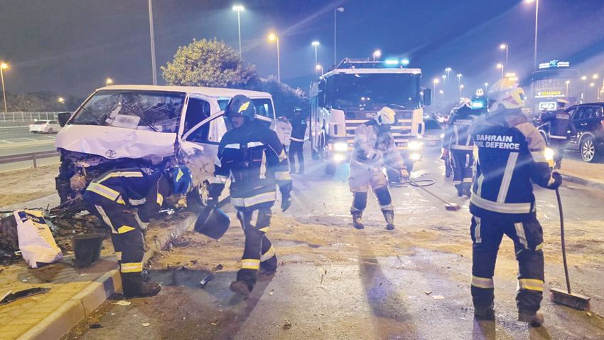 تعرض ثلاثة بحرينيين وثلاثة آسيويين لإصابات بليغة ومتوسطة إثر حادث مروري وقع في ساعة متأخرة من مساء يوم الثلاثاء بين ثلاث سيارات على شارع توبلي.