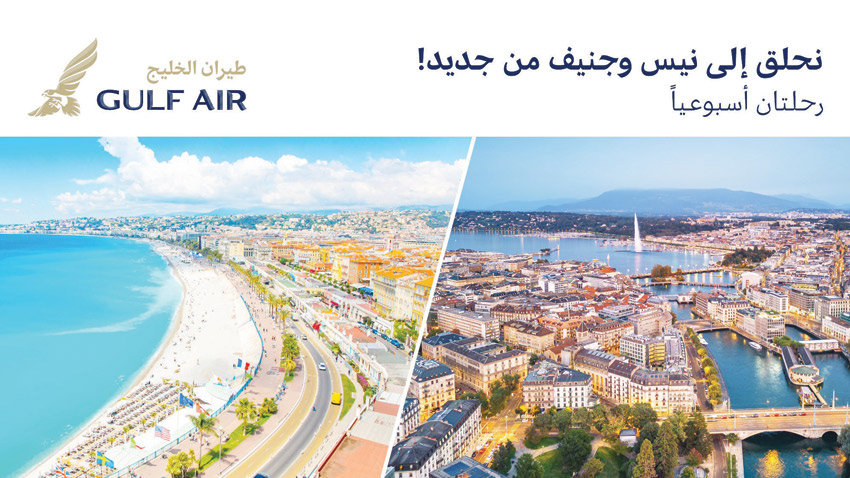 أعلنت شركة طيران الخليج، الناقلة الوطنيّة لمملكة البحرين، استئناف رحلاتها الموسميّة إلى كلٍ من جنيف السويسرية (GVA) ونيس الفرنسية (NCE)، عبر ربطهما بمدينة ميلان الإيطالية (MXP)، وذلك ضمن جدول رحلات طيران الخليج الأوسع لموسم صيف 2026، ويأتي هذا الاستئناف ليمنح للمسافرين مزيدًا من الخيارات المريحة للسفر إلى أبرز وجهات الناقلة الوطنية في أوروبا خلال موسم الصيف.