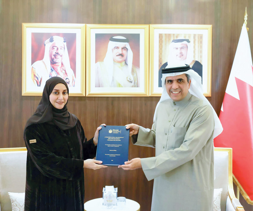 استقبل الدكتور علي بن محمد الرميحي رئيس مجلس أمناء معهد البحرين للتنمية السياسية، الباحثة الدكتورة حنين عيسى الدوي، بمناسبة حصولها على درجة الدكتوراه في الفلسفة من جامعة برونيل لندن.