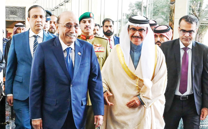 في إطار زيارته لمملكة البحرين، ولقائه مع حضرة صاحب الجلالة الملك حمد بن عيسى آل خليفة ملك البلاد المعظم، استقبل فخامة الرئيس آصف علي زرداري رئيس جمهورية باكستان الشقيقة، بمقر اقامته، الفريق أول الشيخ راشد بن عبدالله آل خليفة وزير الداخلية.