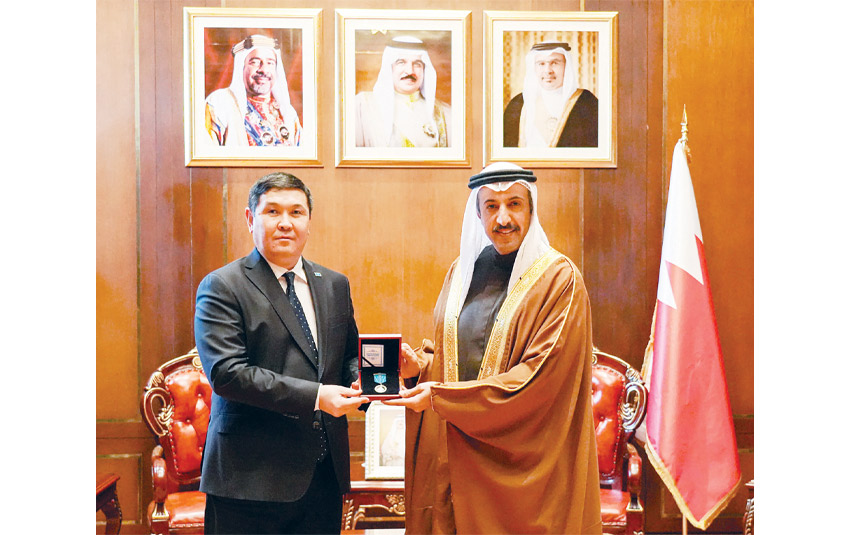 جاء ذلك خلال استقبال الوزير رئيس مجلس أمناء مركز الملك حمد العالمي للتعايش والتسامح ماديار مينيلبيكوف السفير فوق العادة المفوض لجمهورية كازاخستان لدى مملكة البحرين المقيم في الرياض، حيث قام السفير بتسليم الوسام نيابةً عن فخامة الرئيس الكازاخستاني، والوفد المرافق له. وخلال اللقاء أكد اعتزاز مملكة البحرين بقيادة حضرة صاحب الجلالة الملك حمد بن عيسى آل خليفة ملك البلاد المعظم، ودعم صاحب السمو الملكي الأمير سلمان بن حمد آل خليفة ولي العهد رئيس مجلس الوزراء، بالعلاقات الوثيقة التي تجمعها مع جمهورية كازاخستان الشقيقة، وما تشهده من تطور ونماء في مختلف المجالات، والحرص المشترك على توطيد أواصر التعاون، ولا سيما في المجالات الإنسانية والثقافية، ودعم حوار الحضارات.