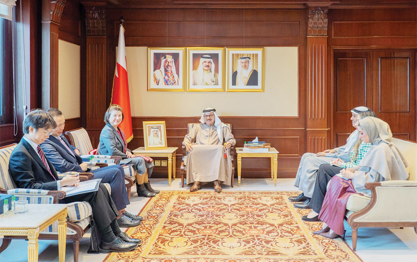 وجرى خلال اللقاء استعراض علاقات الصداقة والتعاون القائمة بين مملكة البحرين واليابان، وما تشهده من تطور ملحوظ في مختلف المجالات، في إطار الحرص المتبادل على تعزيز هذه العلاقات والدفع بها نحو آفاق أرحب بما يحقق المصالح المشتركة للبلدين الصديقين، بالإضافة إلى تبادل وجهات النظر بشأن عدد من القضايا والموضوعات ذات الاهتمام المشترك.